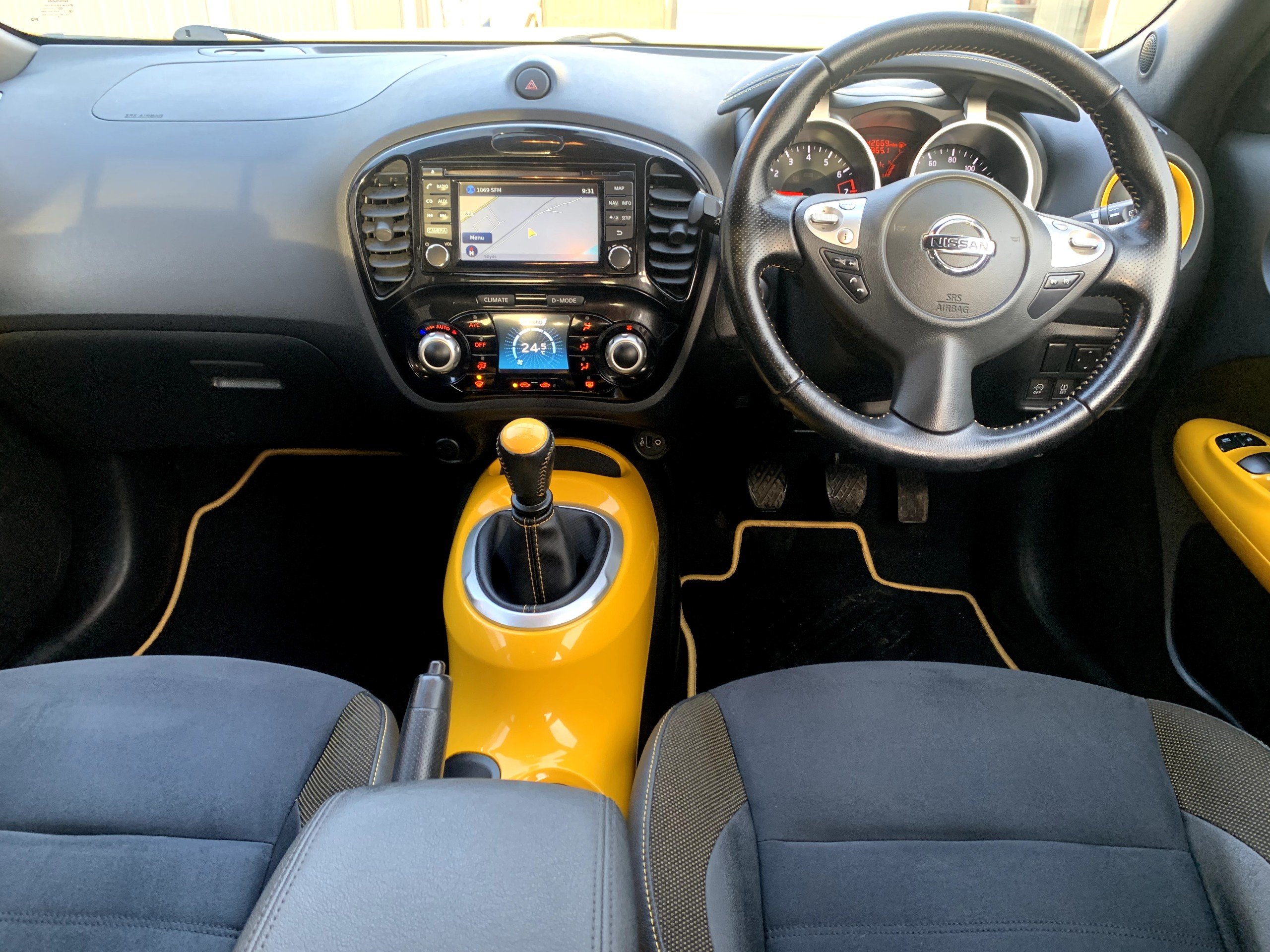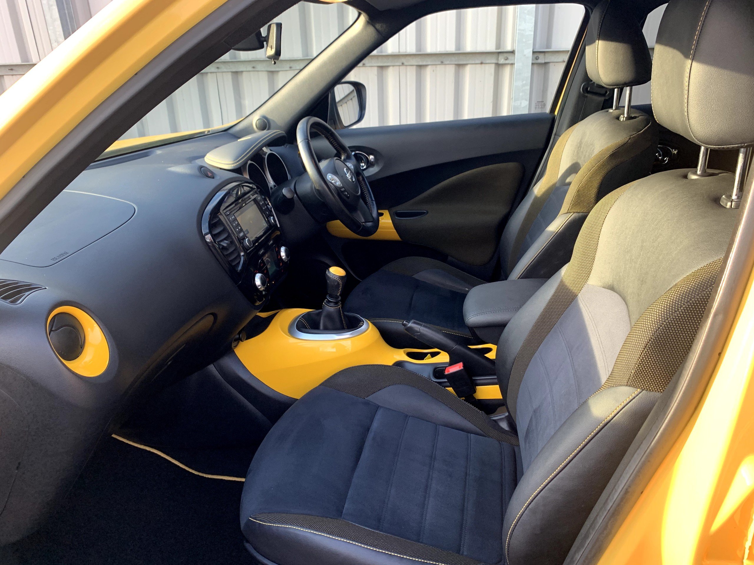 Nissan Juke N-Connecta DIG-T 1.2 Petrol 5dr Manual 2016 16 Reg Car Has Covered 42,675 Miles in Yellow with Blue Interior, 6 Speed Gearbox, Satellite Navigation, Air Conditioning, Alloy Wheels, Electric Windows, Electric Mirrors, Electric Folding Mirrors, Cruise Control, Remote Door Locking, Reversing Camera, Radio, Front and Rear Headrests, 2 Keys, Mot to 30th November 2026, Service History.. Just Serviced £6375